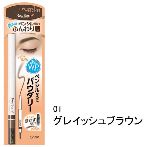 ニューボーン パウダーペンシルブロウEX 01グレイッシュブラウン 2機能一体型アイブロウ(ペンシル&ブラシ)ウォータープルーフ