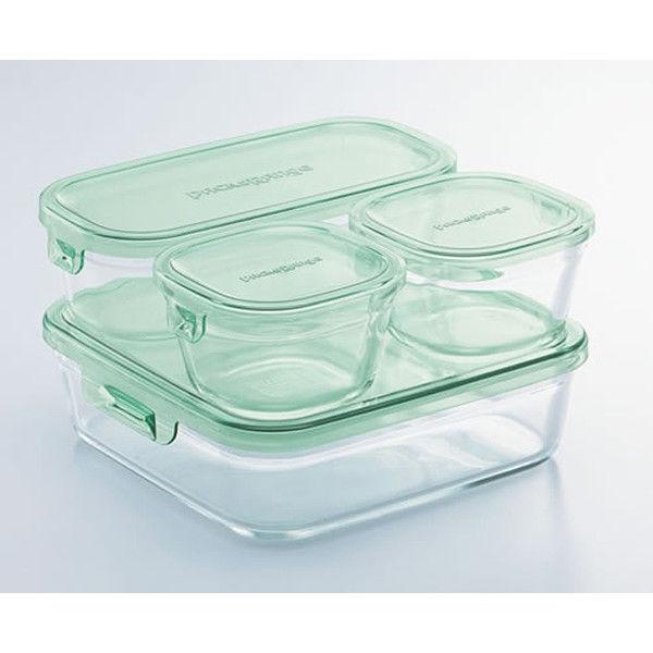 耐熱ガラス 保存容器 グリーン システムセット 4点 ミニ パック&レンジ PSC-PRN4G2 iwaki(イワキ)