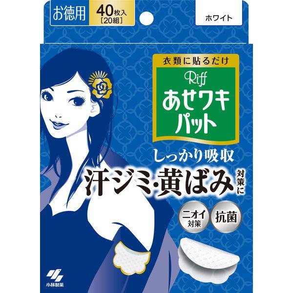 あせワキパット Riff(リフ) ホワイト お徳用40枚入(20組) 汗ワキパッド 小林製薬