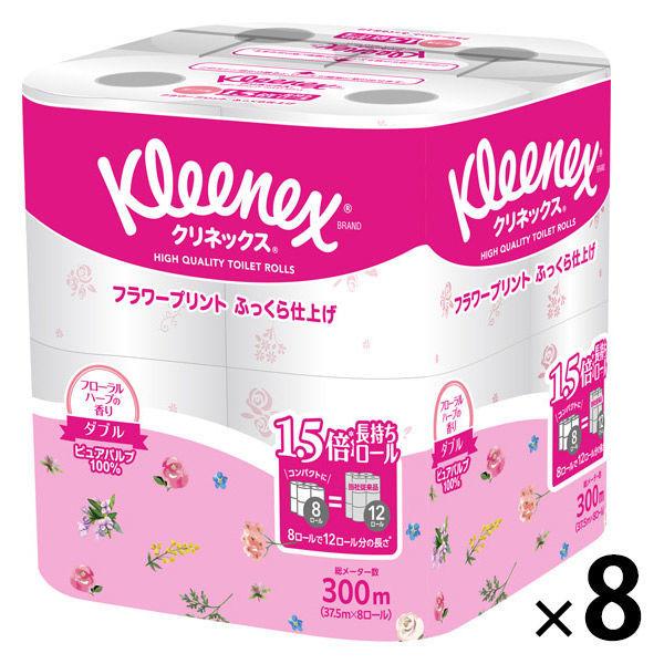 トイレットペーパー ダブル 1.5倍長持ち 8ロール 37.5m パルプ クリネックス プリント フローラルハーブ 1箱(8パック) 日本製紙クレシア
