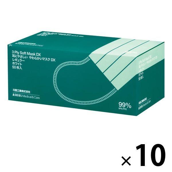 耳にやさしい やわらかいマスク DX レギュラー 不織布 耳ゴムふわふわ 1セット(500枚:50枚入×10箱)川西工業 オリジナル