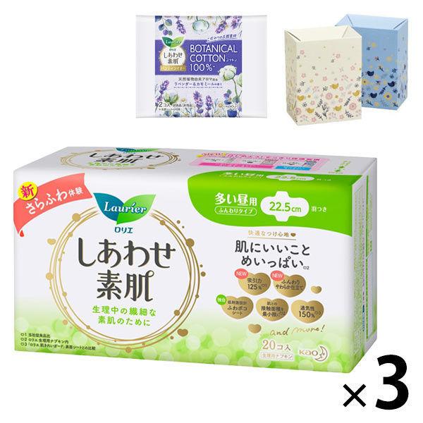 【数量限定おまけ付】ナプキン 多い昼用 羽つき 22.5cm ロリエエフ しあわせ素肌 1セット(20枚×3個)花王
