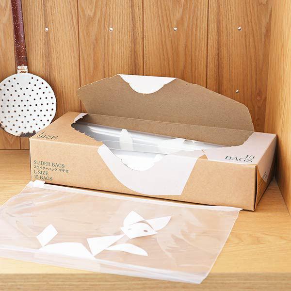 (限定)スライダーバッグ マチ付き L A4ヨコサイズが入る 食品保存袋 冷蔵・冷凍対応 1箱(15枚入) オリジナル