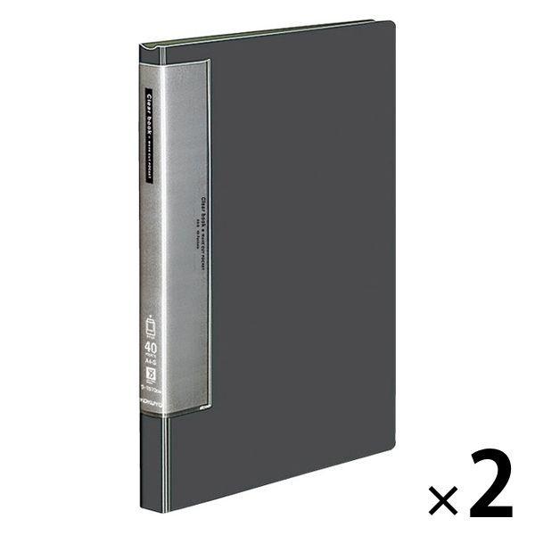 コクヨ クリヤーブック(ウェーブカット・固定式) A4タテ40ポケット ダークグレー ラ-T570DM 2冊