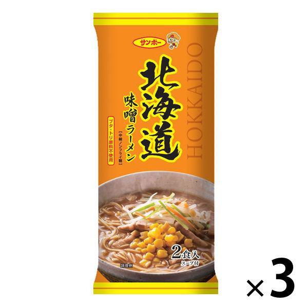 【ワゴンセール】袋麺 サンポー 棒状 北海道味噌ラーメン 2食入り(スープ付) ブタ・トリ原料不使用 1セット(3個) サンポー食品(わけあり品)