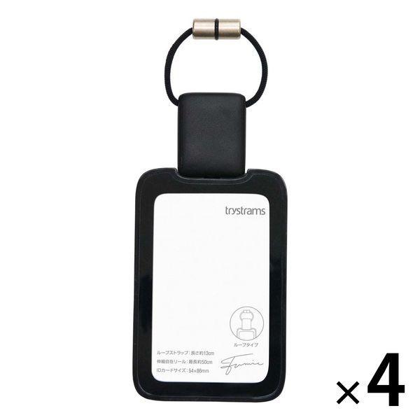 コクヨ trystrams(トライストラムス) リール付IDカードホルダー 名札 ループ縦型 ブラック 黒 4個 THF-MG03D