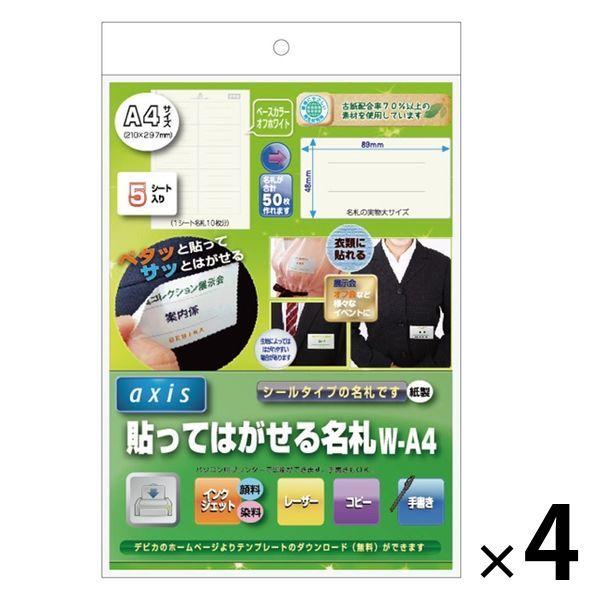 デビカ 貼ってはがせる名札 1シート10枚分 W-A4 白 060610 4袋(5シート×4)