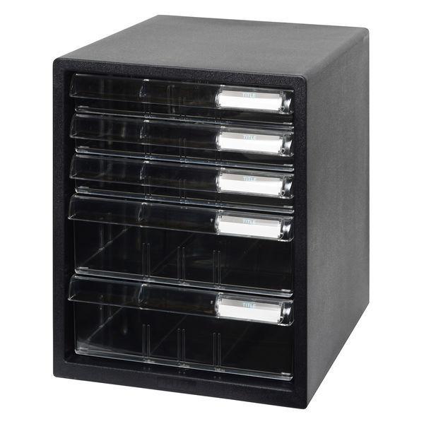 プラス レターケース A4タテ 浅型3段深型2段 仕切り板付き ブラック 黒 引き出し 16119