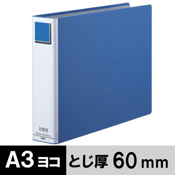 アスクル パイプ式ファイルエコノミータイプ両開きA3E ヨコ とじ厚60mm 青 オリジナル