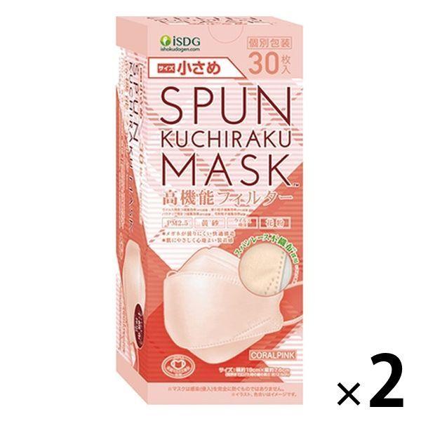 SPUN KUCHIRAKU MASK(クチラクマスク)小さめ(コーラルピンク)1セット(30枚入×2箱)個包装 医食同源ドットコム カラーマスク