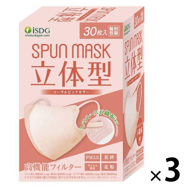 SPUN MASK 立体型スパンレース 不織布(コーラルピンク)1セット(30枚入×3箱) 医食同源ドットコム 個包装 使い捨て カラーマスク