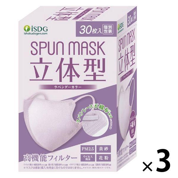 SPUN MASK 立体型スパンレース 不織布 (ラベンダー) 1セット(30枚入×3箱) 医食同源ドットコム 個包装 使い捨て カラーマスク