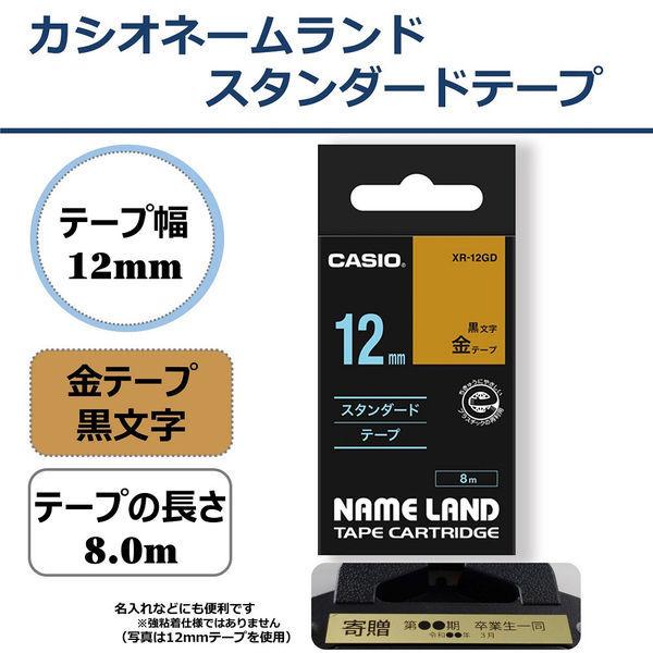 カシオ CASIO ネームランド テープ スタンダード 幅12mm 金ラベル 黒文字 8m巻 XR-12GD