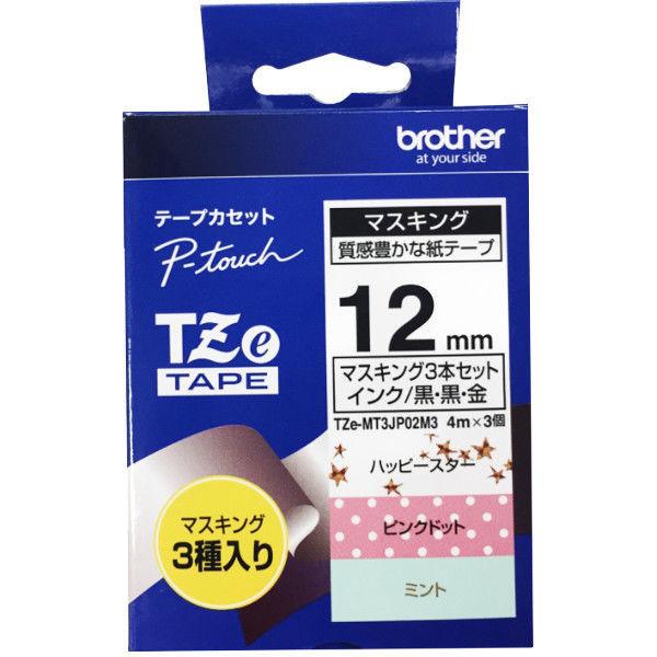 ピータッチ テープ 幅12mm ハッピースター/ピンクドット(黒)/ミント(金) TZe-MT3JP02M3 1セット(3個入)