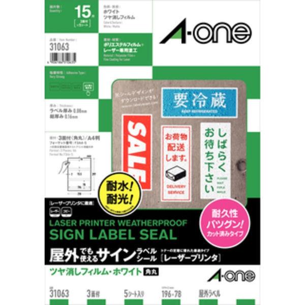 エーワン(A-one)屋外でも使えるラベルシール 備品ラベル つや消しフィルム レーザー 耐水 シール A4 ホワイト 3面 5シート 31063