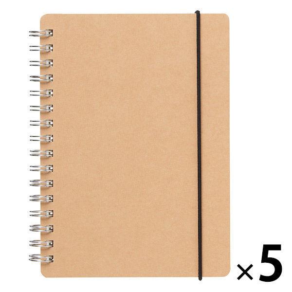 無印良品 上質紙ダブルリングノート ドット方眼 ベージュ A6 白 70枚 ゴム留め付き 1セット(5冊組) 良品計画