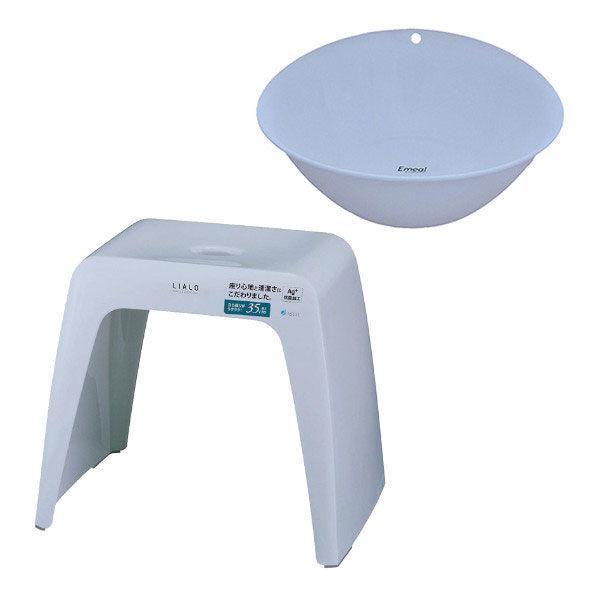 【お得セット】 リアロ 風呂いす コの字型 35cm+エミール 湯おけ ブルー 2点セット Ag抗菌 アスベル